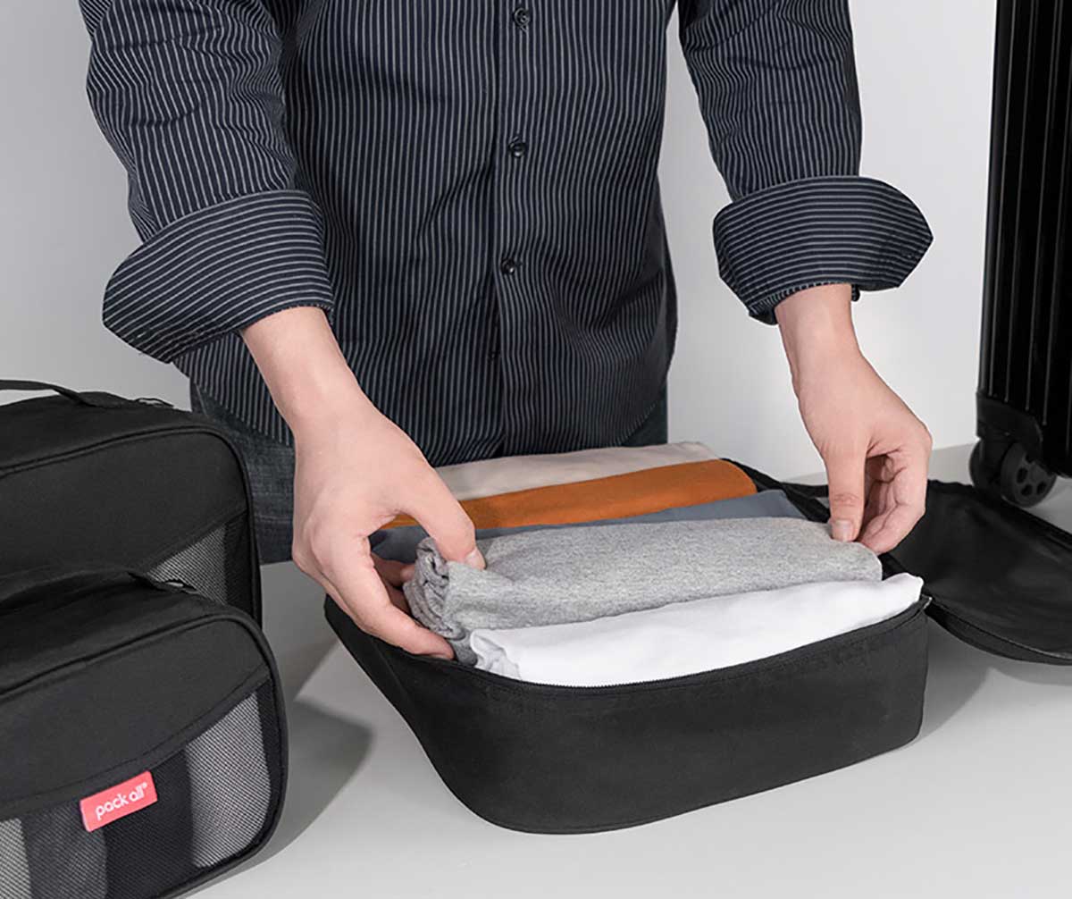 長旅行では、荷物が多くて、欲しい服がなかなか見つかりませんよね。Pack Allの衣類収納袋はサイドのジッパーで簡単に空間を圧縮でき、透明なデザインで必要なものがすぐ見つかります。