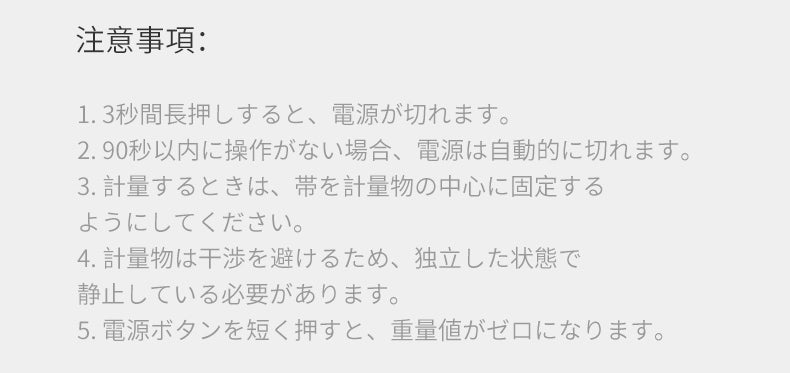 - 数値がロックされるまで待つ: 荷物を持ち上げ、重さが安定すると「ピー」という音とともに数値がロックされます。音が鳴ってから、画面の数値をお読みください。