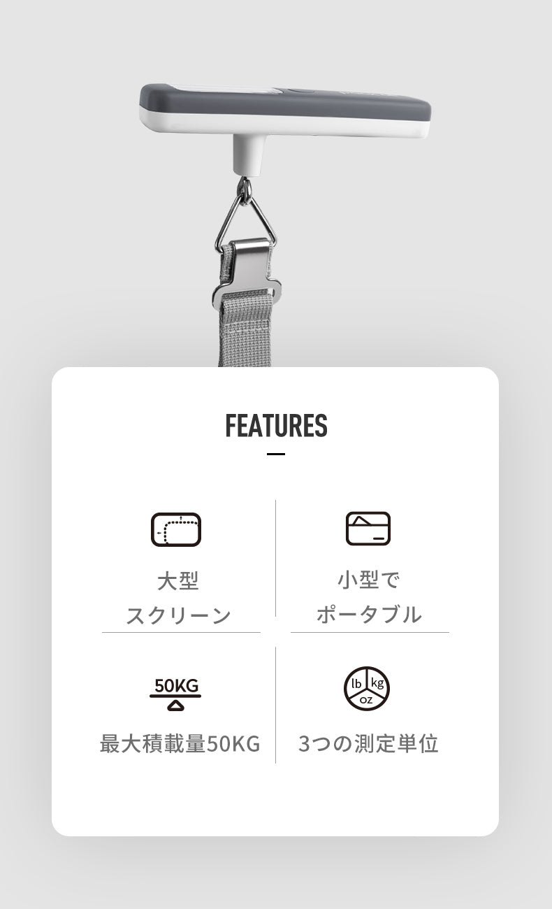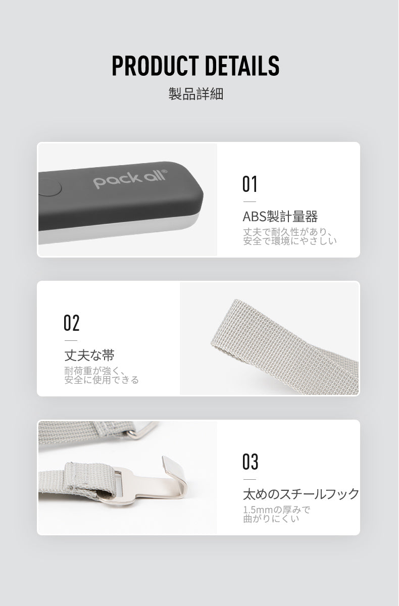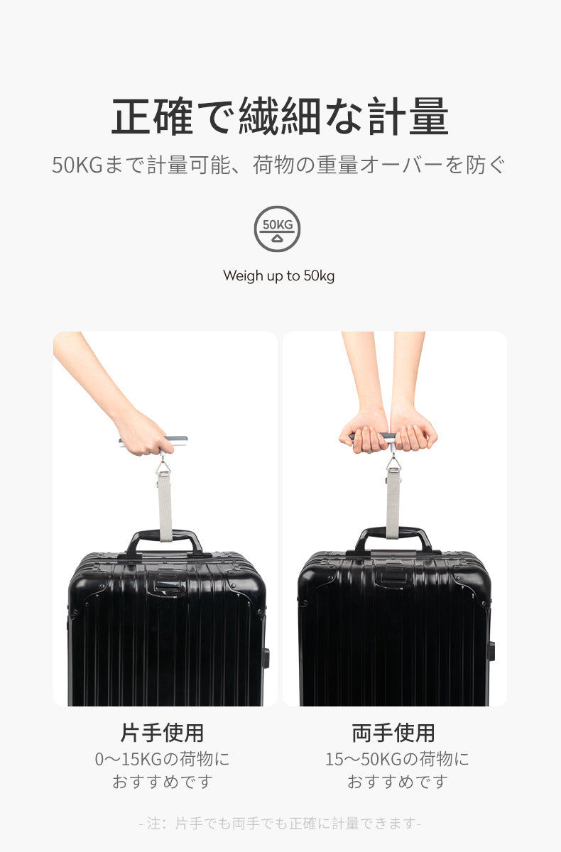 - 飛行機での旅行前、手荷物の重量オーバーを事前にチェックするのに最適。人間工学に基づいたT字型グリップで持ちやすく、最大50kgまで正確に計量できるため、安心して旅の準備ができます。