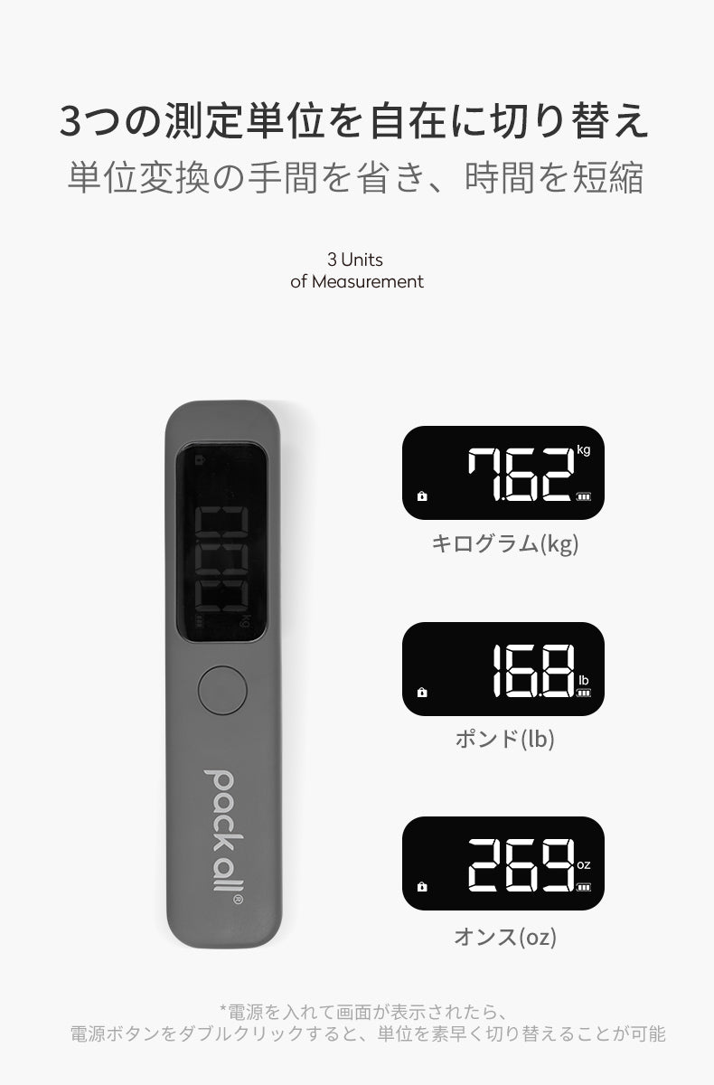 シンプルで直感的なワンボタン操作。ポンド(lb)、キログラム(kg)、グラム(g)の3つの単位を簡単に切り替え可能で、様々なシーンに対応します。