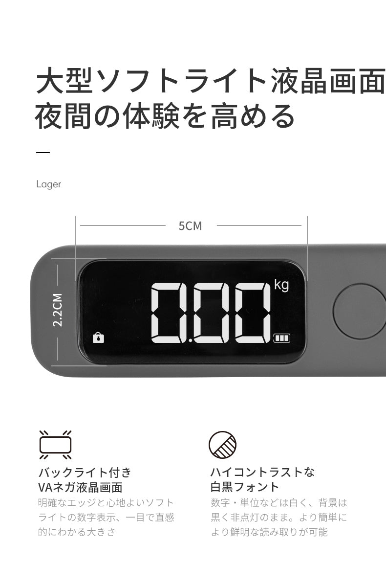 - このT字グリップ軽量ラゲッジスケールは、見やすいバックライト付き液晶画面を搭載した、旅行に必須のアイテムです。