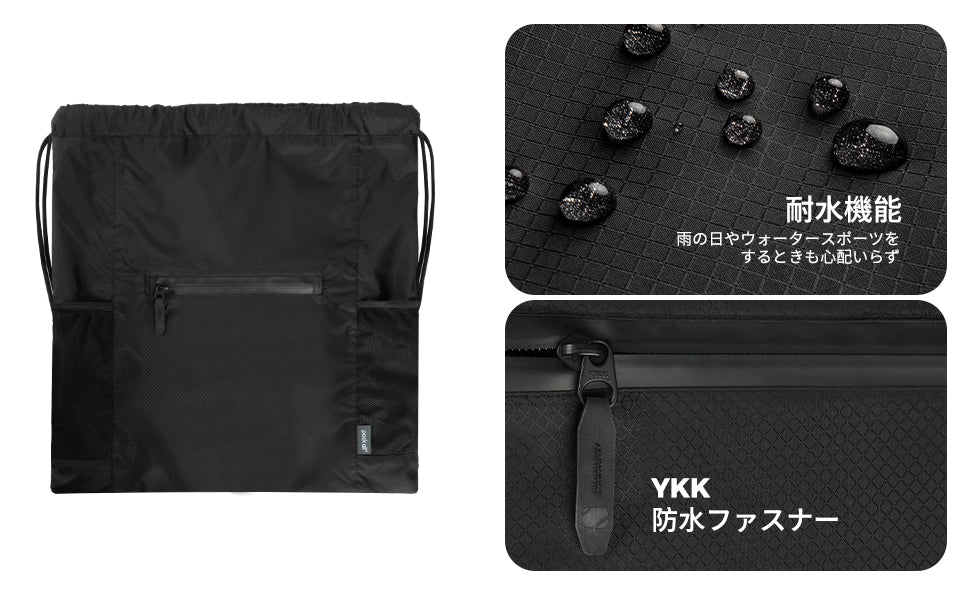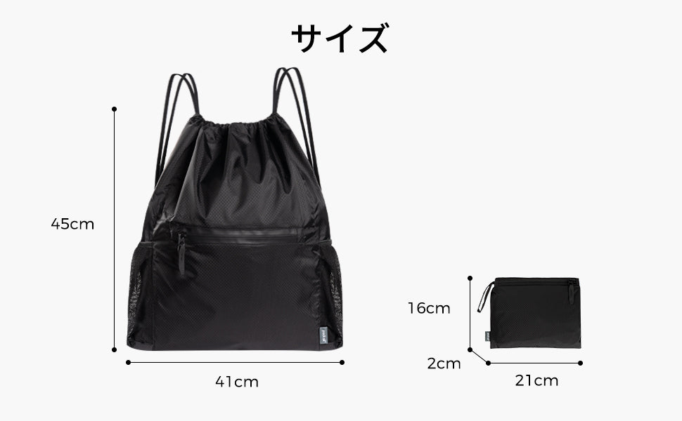 - この軽量巾着折りたたみバッグは、超軽量ながらも丈夫な撥水素材で作られており、突然の雨や水しぶきから中身を守ります。