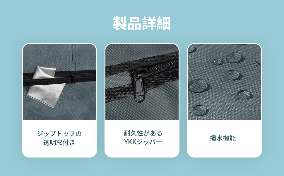 - ファスナー部分は非防水: ジッパー(ファスナー)部分は防水仕様ではございません。水濡れにご注意いただき、雨天時の長時間のご使用や、水滴がかかる場所での放置は避けてください。