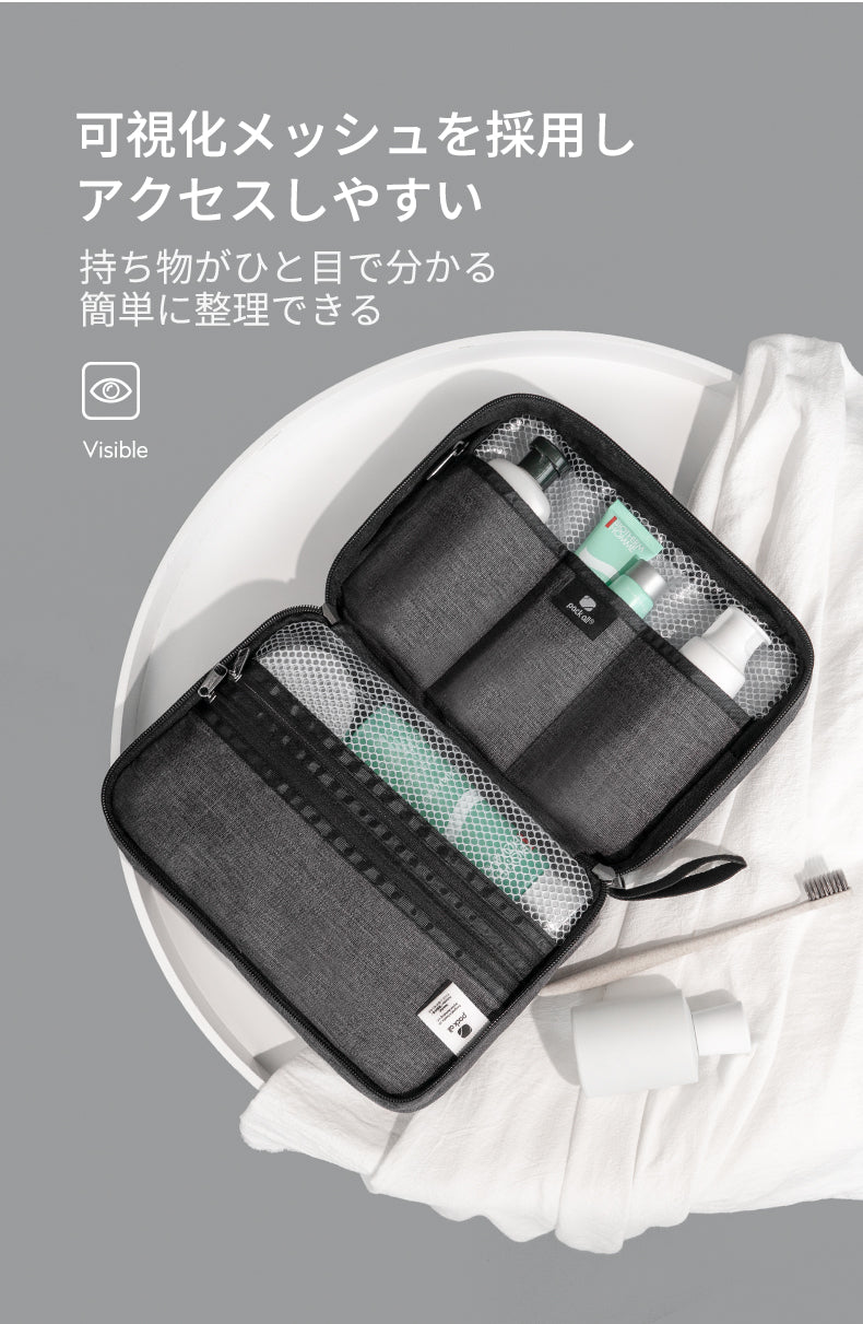 - 旅行・出張に最適な携帯性: 洗面用具やコスメ、スキンケア用品などをスマートにまとめて持ち運べ、旅行や出張時のパッキングを効率化します。