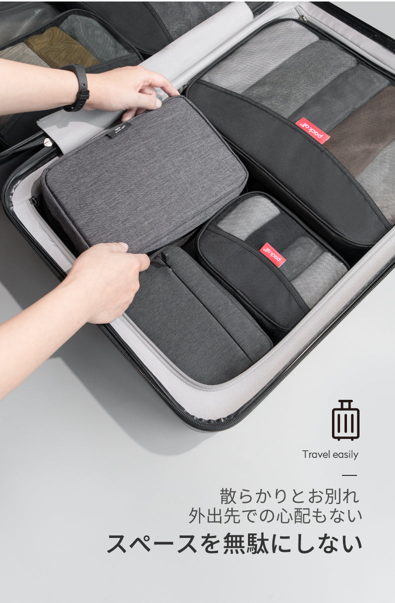 - 耐久性のある防水素材でお手入れも簡単。機能性と携帯性を兼ね備えた、旅の必需品です。