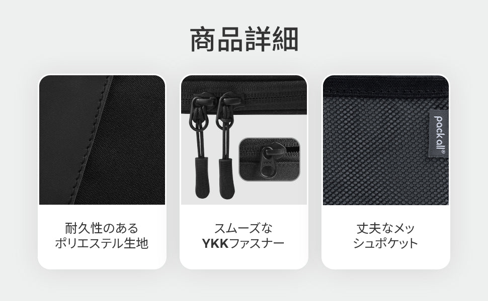 摩擦に強く、シワになりにくいポリエステル素材を採用。多少の水濡れにも対応できる撥水性を備え、日常使いでの汚れや摩耗から中身をしっかりと保護します。 -