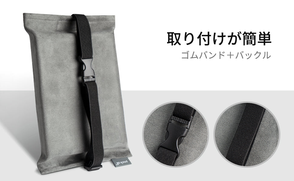 調節可能な伸縮性のあるバックル(留め具)付きストラップで、サンバイザーやヘッドレスト、シートバックポケットなど、お好みの場所に簡単にしっかりと固定できます。