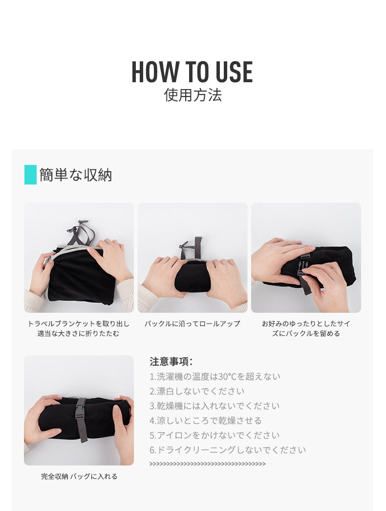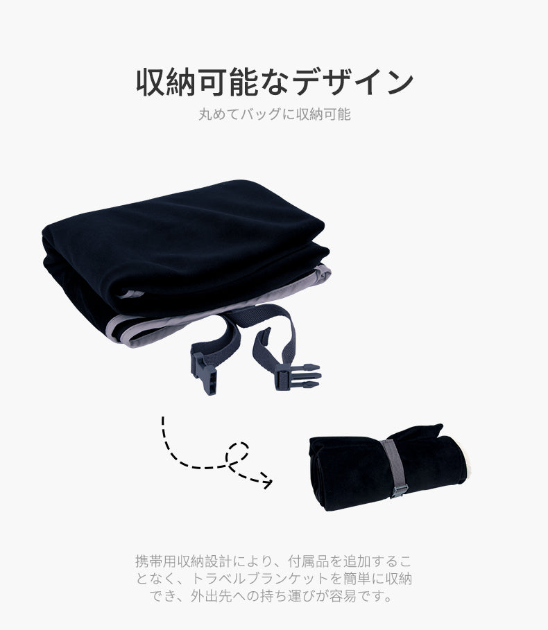 - 軽量でオールシーズンなトラベルブランケットは、旅のお供に最適。